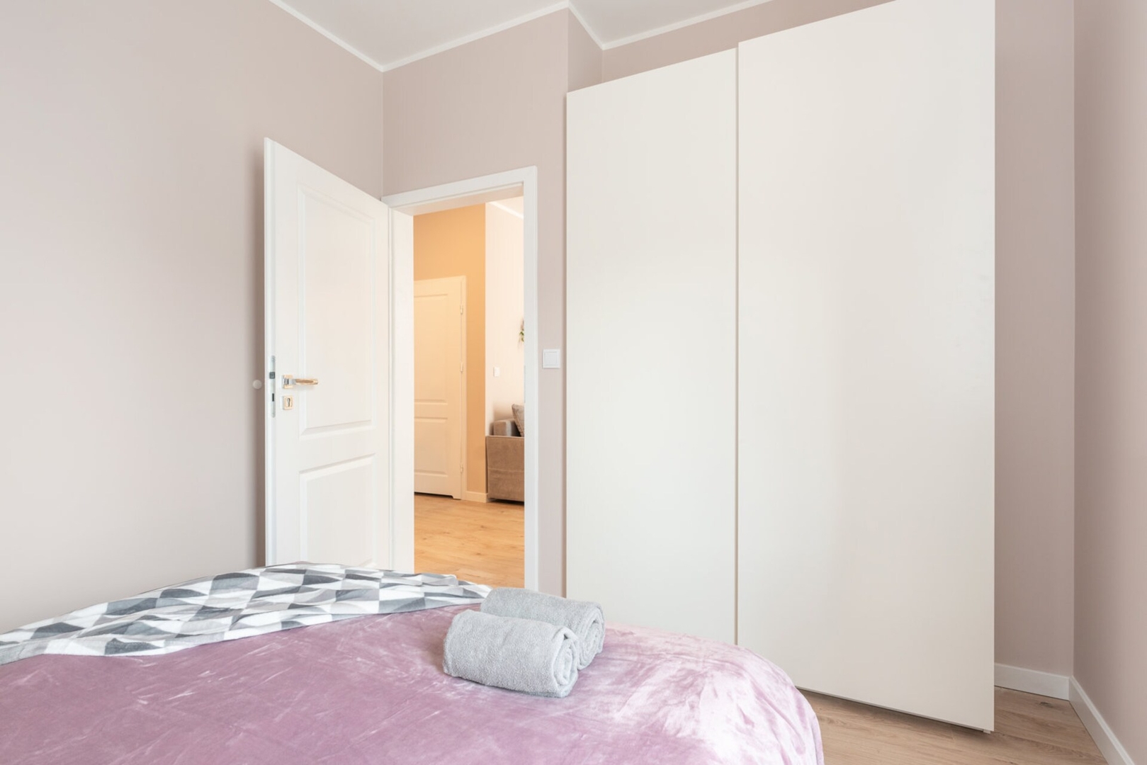 Apartament znajduje się w tętniącej życiem dzielnicy Praga-Północ, znanej z artystycznego klimatu i historycznej zabudowy. W bliskiej okolicy znajduje się popularna ulica Ząbkowska z licznymi kawiarniami, restauracjami i miejscami kultury. W niedużej odległości położone są również Muzeum Neonów oraz obszar Soho Factory z kreatywnymi przestrzeniami i wystawami. Dzięki świetnej komunikacji, w tym linii metra M2, łatwo można dotrzeć nad bulwary wiślane oraz na Stare Miasto.