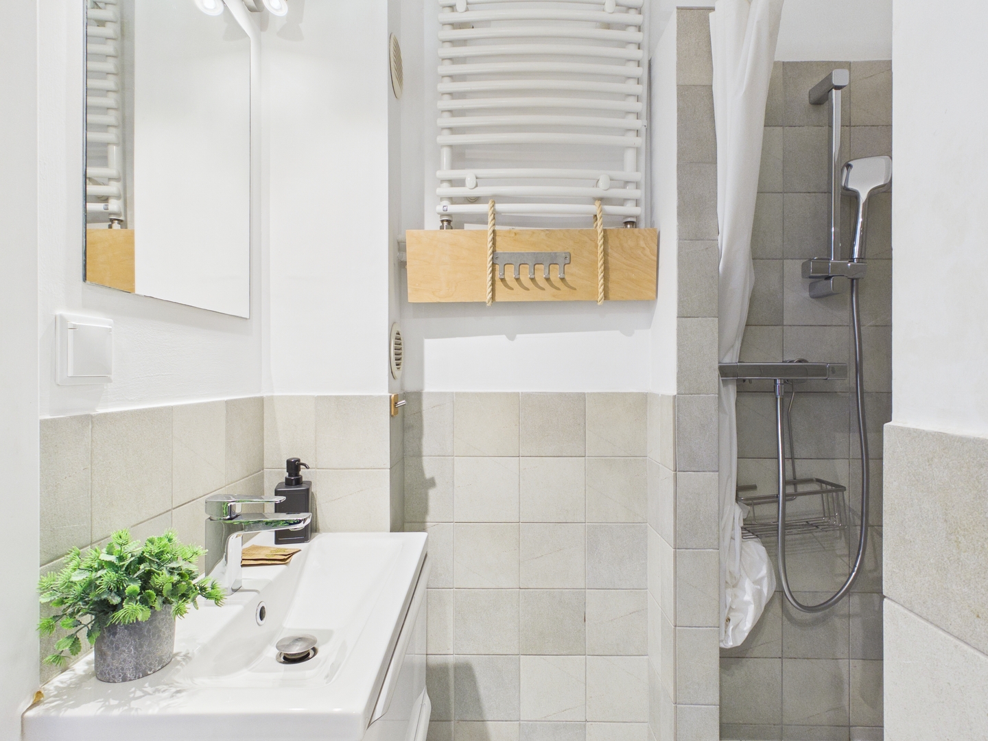 — SALON: Rozkładana sofa, pościel, podwójne łóżko, pościel, szafka RTV i szafa. — KUCHNIA: Kuchenka gazowa, czajnik, lodówka z zamrażarką, szklanki, komplet garnków, sztućce, pralka, patelnia, stół jadalniany z krzesłami — ŁAZIENKA: Łazienka z prysznicem, toaleta, umywalka, lustro, suszarka do włosów, ręczniki. — INNE: Żelazko z deską do prasowania, suszarka na pranie, suszarka bębnowa. — MULTIMEDIA: Telewizja, internet Wi-Fi. — ZWIERZĘTA: Zwierzęta są akceptowane. — PARKOWANIE: Parking miejski płatny.