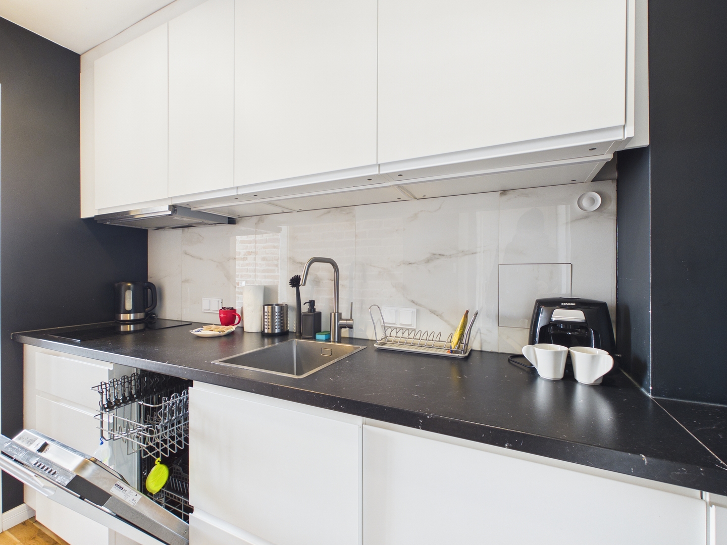 — SALON: Wygodna rozkładana sofa, stolik kawowy, szafka RTV, telewizor, stół jadalniany z czterema krzesłami. — SYPIALNIA: Duże podwójne łóżko, szafa. — KUCHNIA: Płyta indukcyjna, piekarnik, zmywarka, czajnik elektryczny, lodówka z zamrażarką, szklanki, komplet garnków, patelnia, sztućce. — ŁAZIENKA: Prysznic, toaleta, umywalka, lustro,, suszarka do włosów, ręczniki. Dodatkowe udogodnienia: żelazko z deską do prasowania Dostępne multimedia: telewizja oraz internet Wi-Fi. Rezerwując nasz apartament akceptujecie Państwo nasz regulamin.