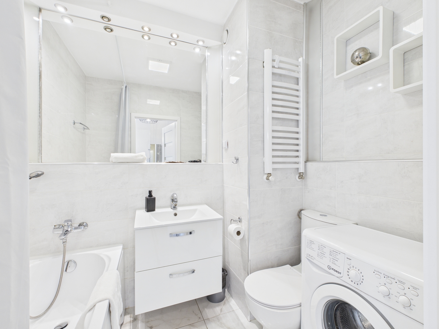 The apartment is situated in the peaceful Siekierki area of Mokotów, offering a calm residential atmosphere close to nature. In the vicinity, you will find the popular Czerniakowskie Lake Nature Reserve, ideal for walks and outdoor activities. The Wilanów district with the famous Wilanów Palace and its gardens is also within easy reach. The neighbourhood provides convenient access to public transport, ensuring a quick connection to the city centre, as well as to key business areas in Mokotów. Nearby you will also find local shops, cafés, sports facilities, and cycling routes along the Vistula.