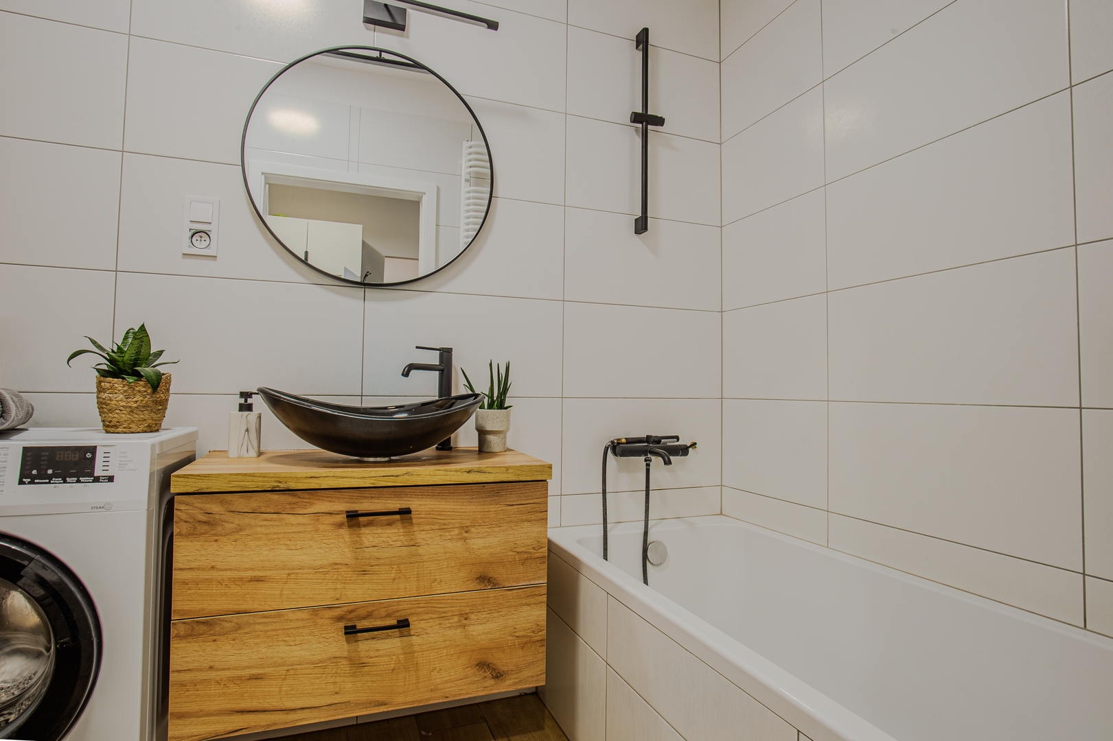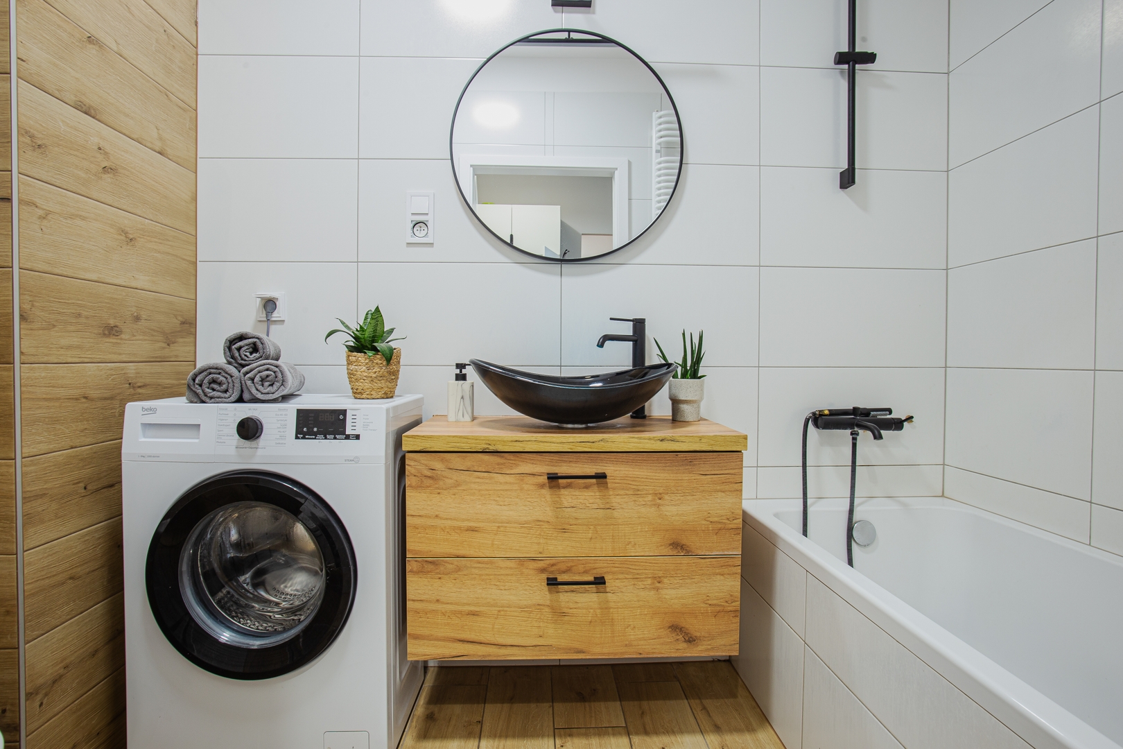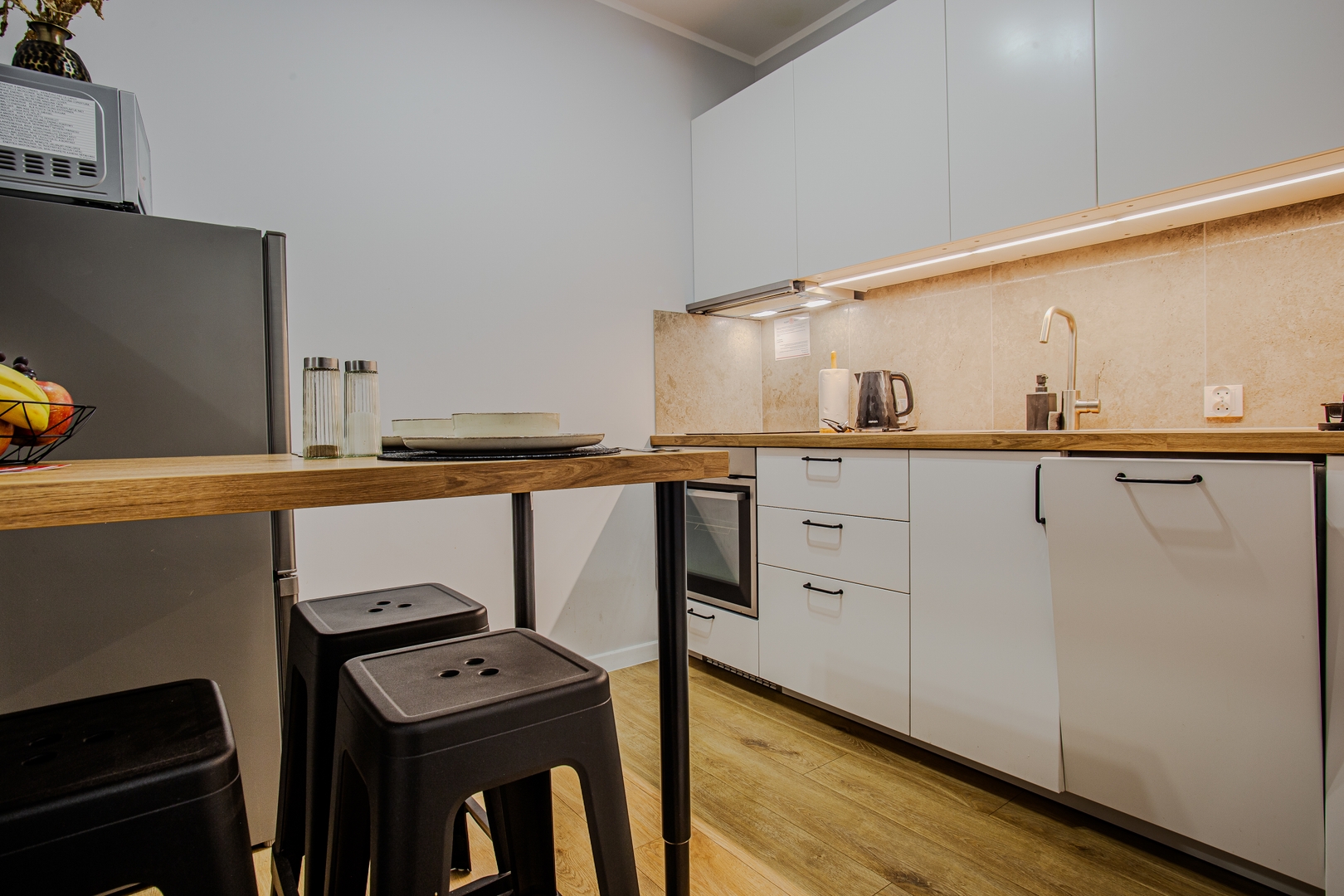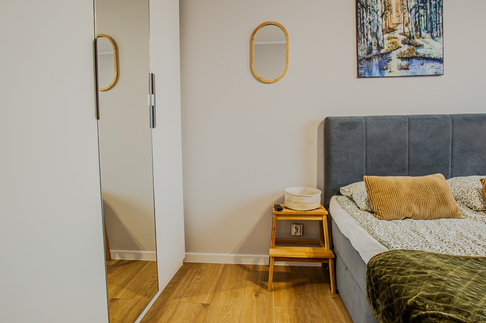 Room: Bed, bedding, desk with chair, coffee table, TV stand, television, and wardrobe. Shared kitchen: Induction hob, kettle, oven, dishwasher, microwave, fridge, glasses, full set of pots, cutlery, frying pan. Bathroom: Bathroom with a bathtub, toilet, sink, mirror, hairdryer, towels. Other: Iron with ironing board and drying rack are located in the shared area. Multimedia: TV, Wi-Fi internet. Pets: Pets are not allowed. Parking: Free parking available. (Please ask for availability). By booking our apartment, you accept our terms and conditions.