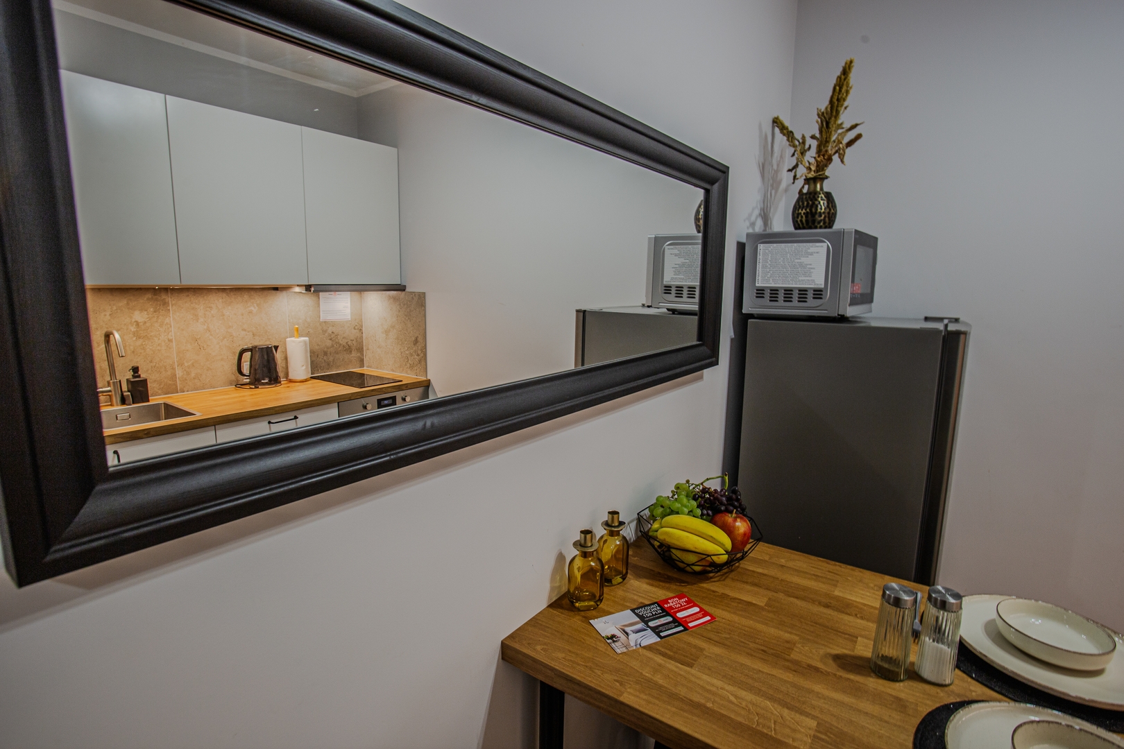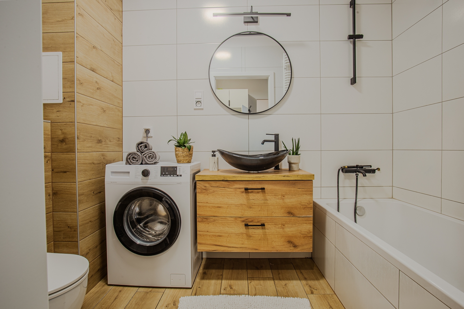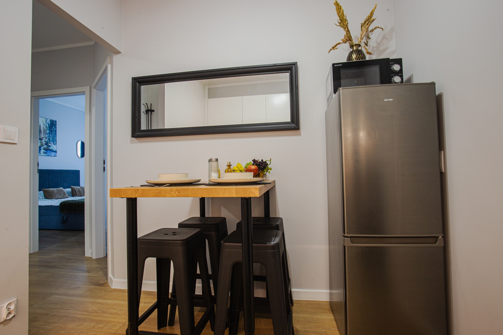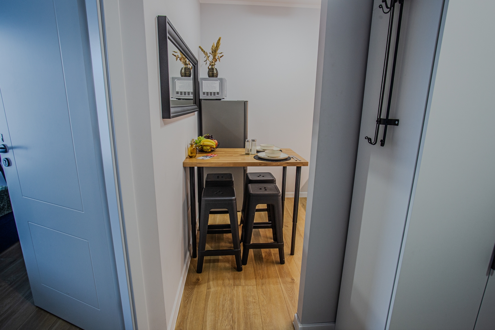 Room: Bed, bedding, desk with chair, coffee table, TV stand, television, and wardrobe. Shared kitchen: Induction hob, kettle, oven, dishwasher, microwave, fridge, glasses, full set of pots, cutlery, frying pan. Bathroom: Bathroom with a bathtub, toilet, sink, mirror, hairdryer, towels. Other: Iron with ironing board and drying rack are located in the shared area. Multimedia: TV, Wi-Fi internet. Pets: Pets are not allowed. Parking: Free parking available. (Please ask for availability). By booking our apartment, you accept our terms and conditions.